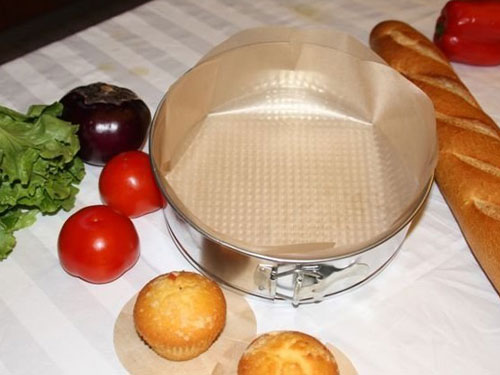 PTFE 铁氟龙/特氟龙/聚四氟乙烯烤盘片由玻璃纤维基布上面涂覆化学性质稳定并且耐高温的聚四氟乙烯,经过特殊工艺加工而成。颜色:黑色,棕色,银色,黑闪银,黑闪铜,白色等。